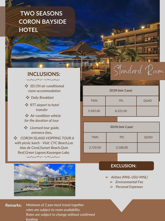 Coron is an incredible choice for anyone looking for an unforgettable getaway filled with adventure and relaxation. The beauty of the destination is simply breathtaking - from its immaculate beaches and crystal-clear waters to the stunning scenery all around you